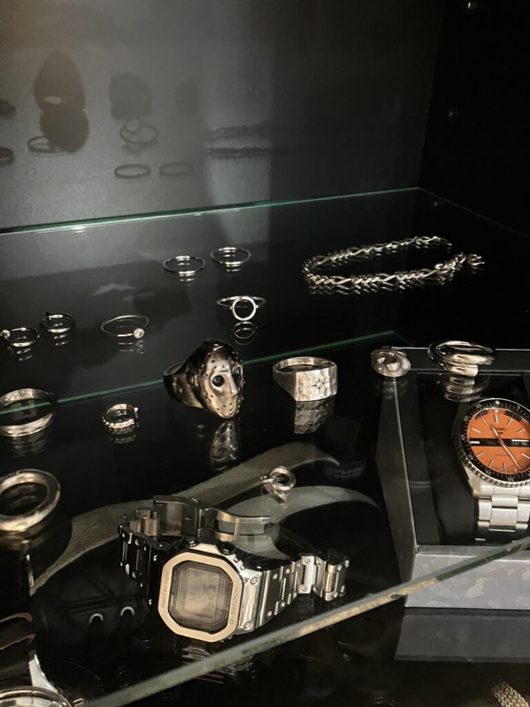 はい、気付きましたか、映画「13日の金曜日」シリーズの「ジェイソン」のリング。これ完結編バージョン。ガチャガチャストリートを通った時に目に飛び込んできたので、思わずジャリ銭ほうりこんでました。たまたまこの後友人と会食があったので、そいつのもポチリ、ちゃうガチャっと。なかなか精巧重厚で価値ありっす。是非みなさん興味があれば、、ってだれが興味あんねん!(やなぎぶそん風)。話は戻り、SHADOWはなかなかイカしたディスプレイ棚で、ご満足いただけるかと。